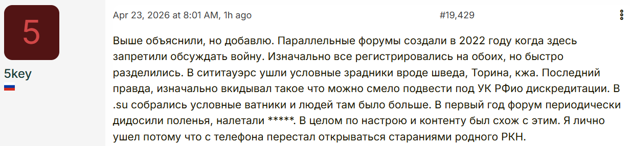Цитата: Serg046 от Апр. 22, 2026, 14:15Да и я думаю. Но к чему ты это пишешь? Я к тому, что инфа все равно дойдет до всех, нах блокировки-то тогда. Если конечно причина именно в этом, в чем я не уверен.