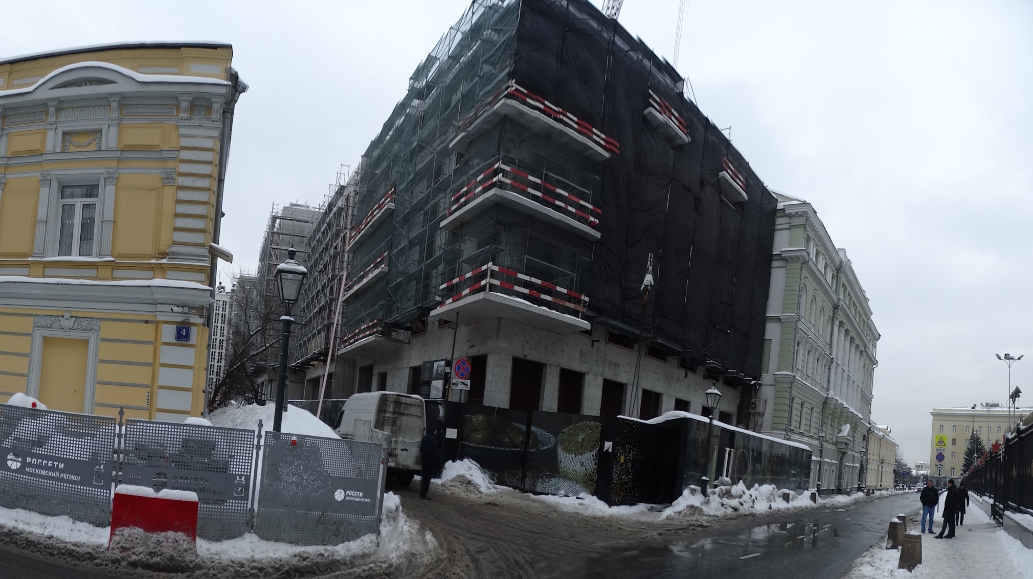 На доме с колоннами затишье уже давненько. Думаю, месяц отделка не двигается.